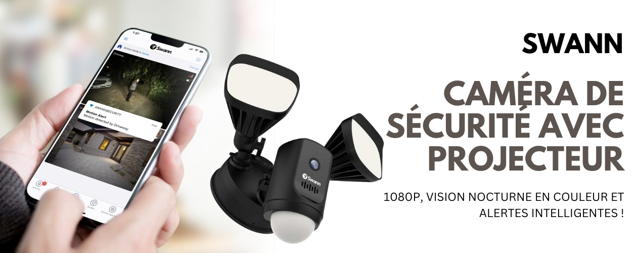 La Swann Floodlight Camera combine des projecteurs puissants activés par mouvement avec une vidéo HD et un système audio bidirectionnel pour une protection complète de votre maison, de jour comme de nuit. Robuste et fiable, la Swann Floodlight Camera est conçue pour dissuader les intrus et protéger votre propriété avec des fonctionnalités intelligentes qui rendent la sécurité simple et efficace.